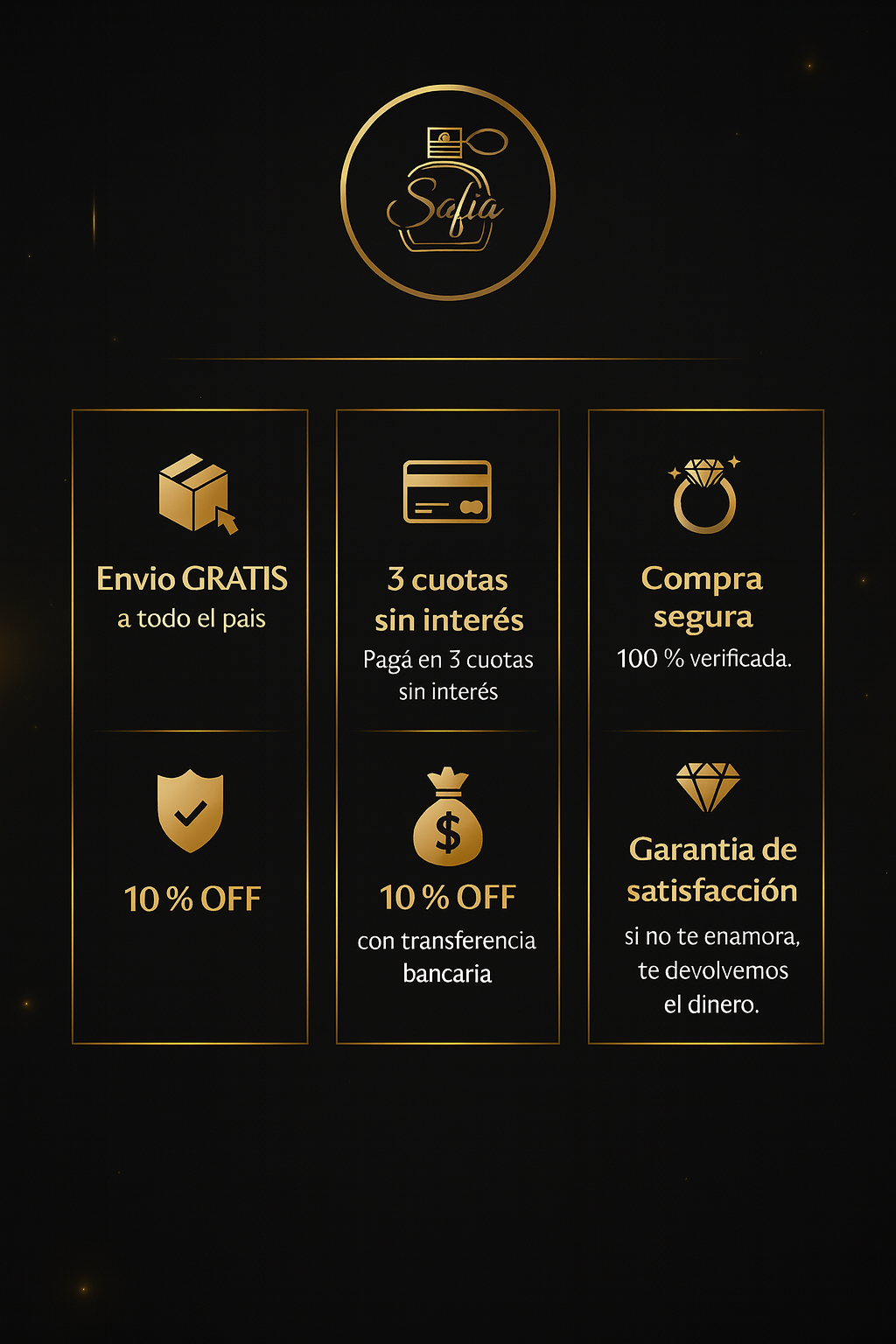 Bienvenida a Tienda Sofía, donde cada fragancia cuenta una historia y cada elección refleja tu personalidad. Nuestro set especial de 4 perfumes de 100 ml fue diseñado para quienes buscan calidad real, elegancia diaria y una presencia memorable sin pagar de más.
